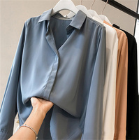 사무실 레이디 봄 가을 세트 셔츠 단색 긴 소매 옷깃 블라우스 최고 여성 플러스 사이즈 우아한 티셔츠